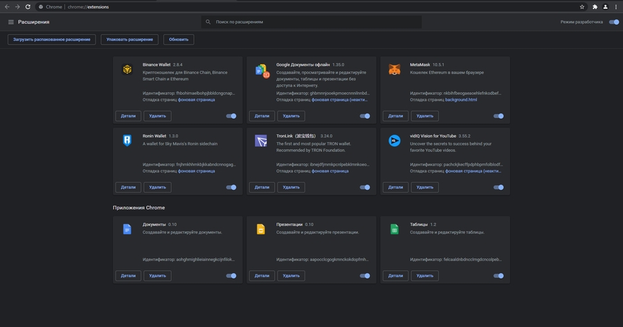 В правом верхнем углу включаем режим разработчика.